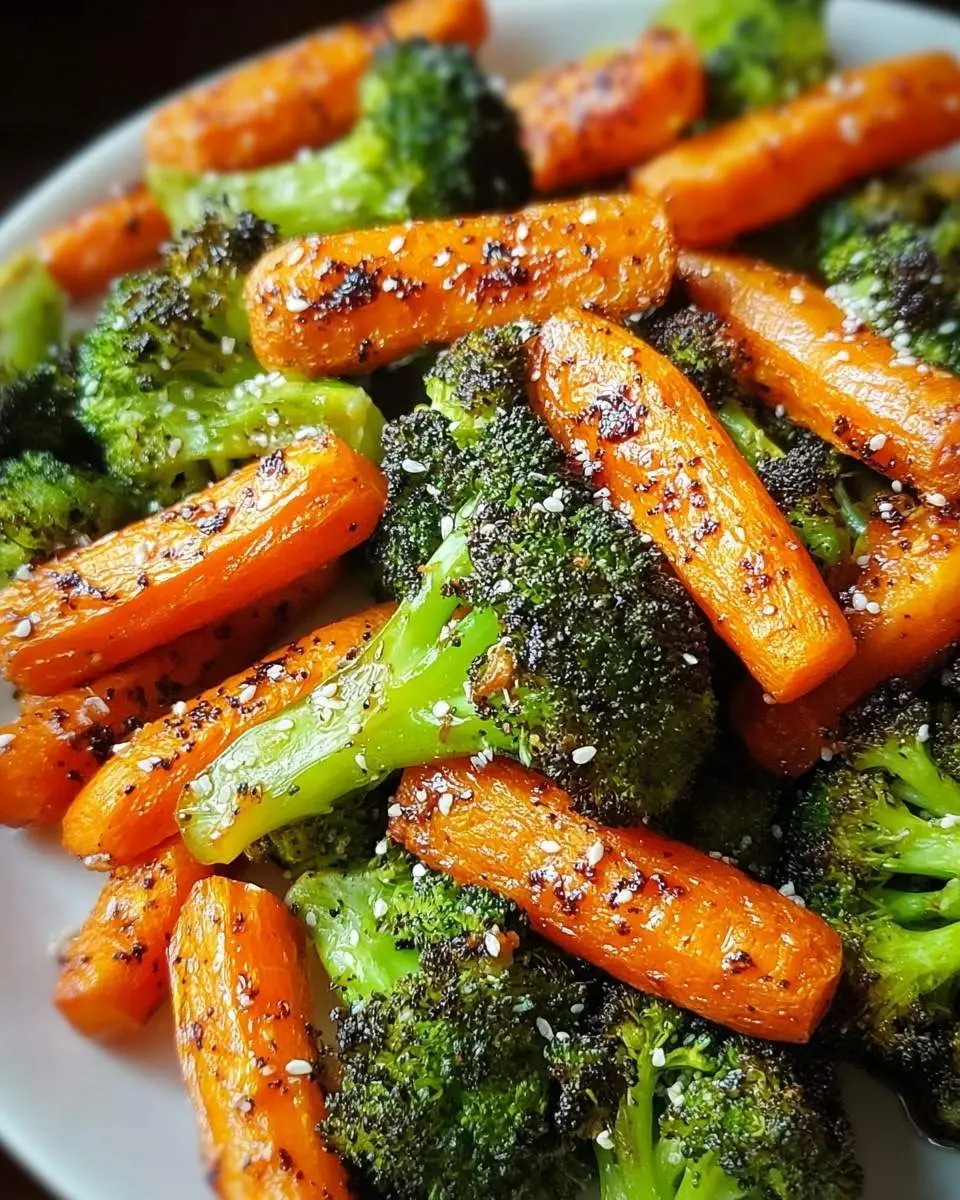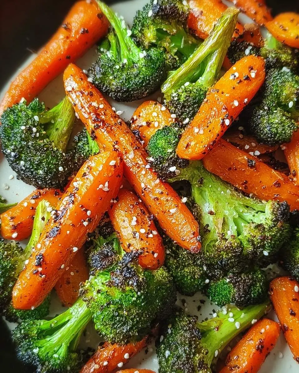 If you enjoy a bit of heat, I suggest adding a pinch of red pepper flakes to your seasoning mix before roasting. You can also drizzle a little sriracha or hot sauce over the roasted broccoli and carrots right before serving for an extra kick!