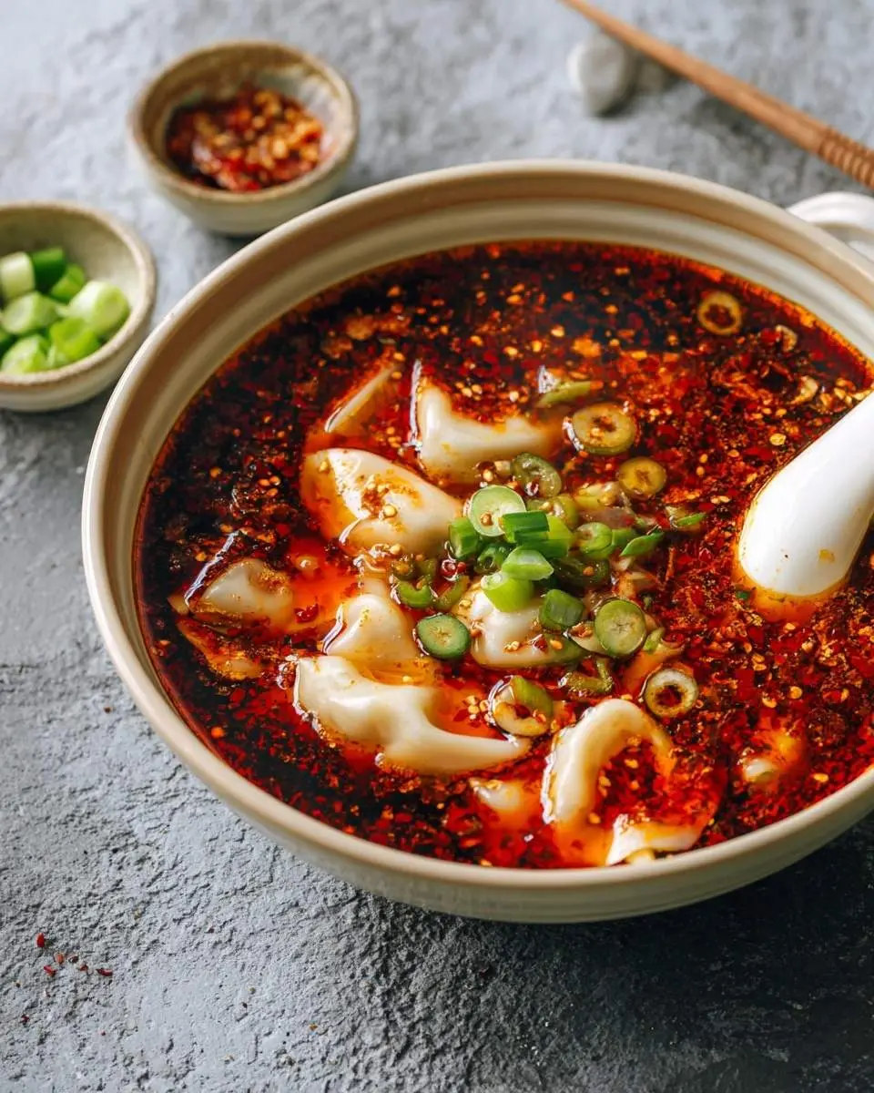 Fiery Szechuan-Inspired Spicy Dumpling Soup